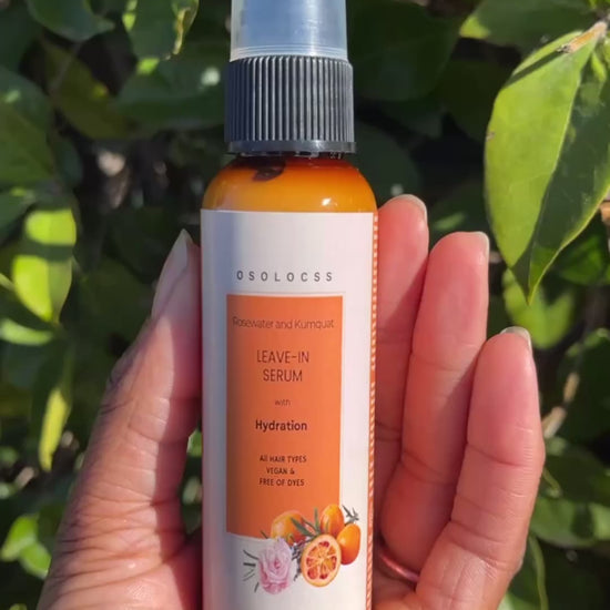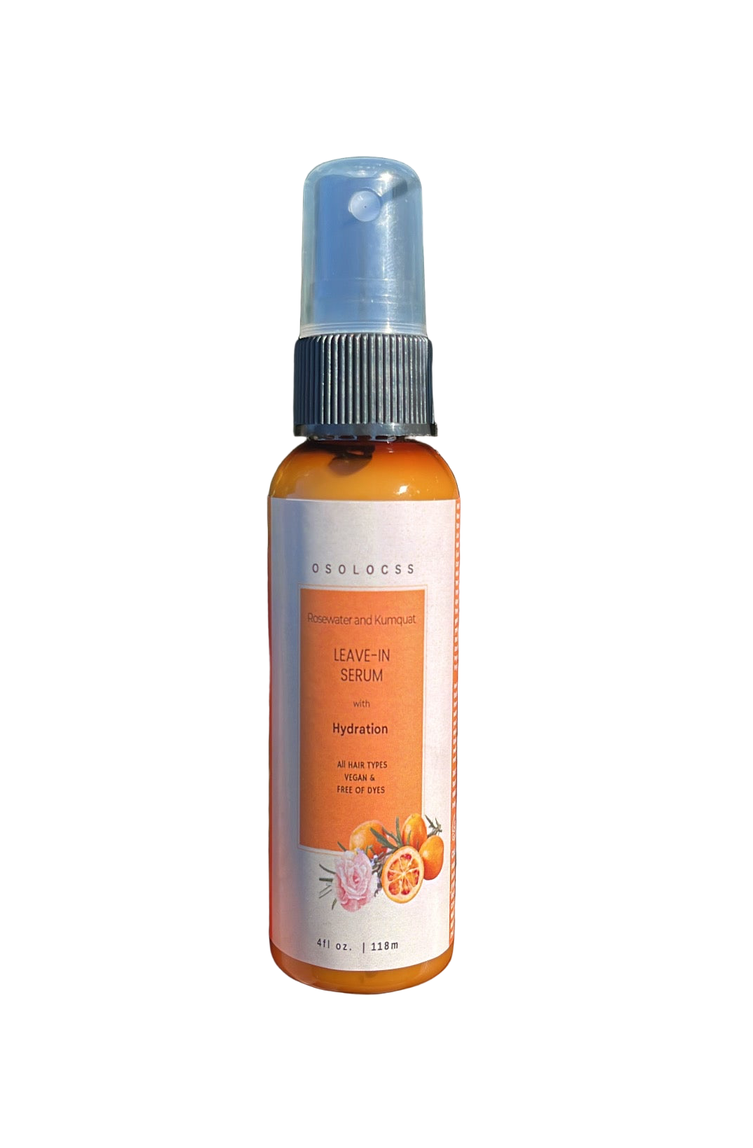 Nourish and hydrate your hair with our Rosewater and Kumquat Leave-In Serum. This lightweight formula detangles, adds shine, and leaves your hair soft and silky.
